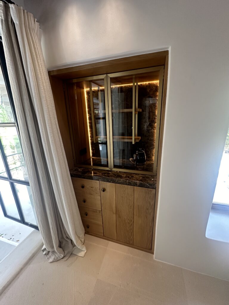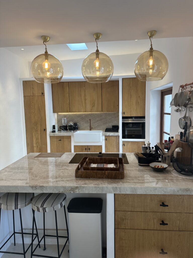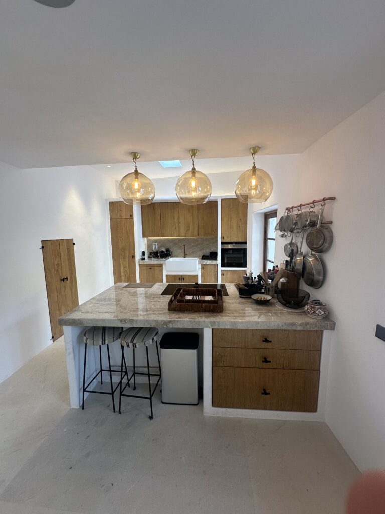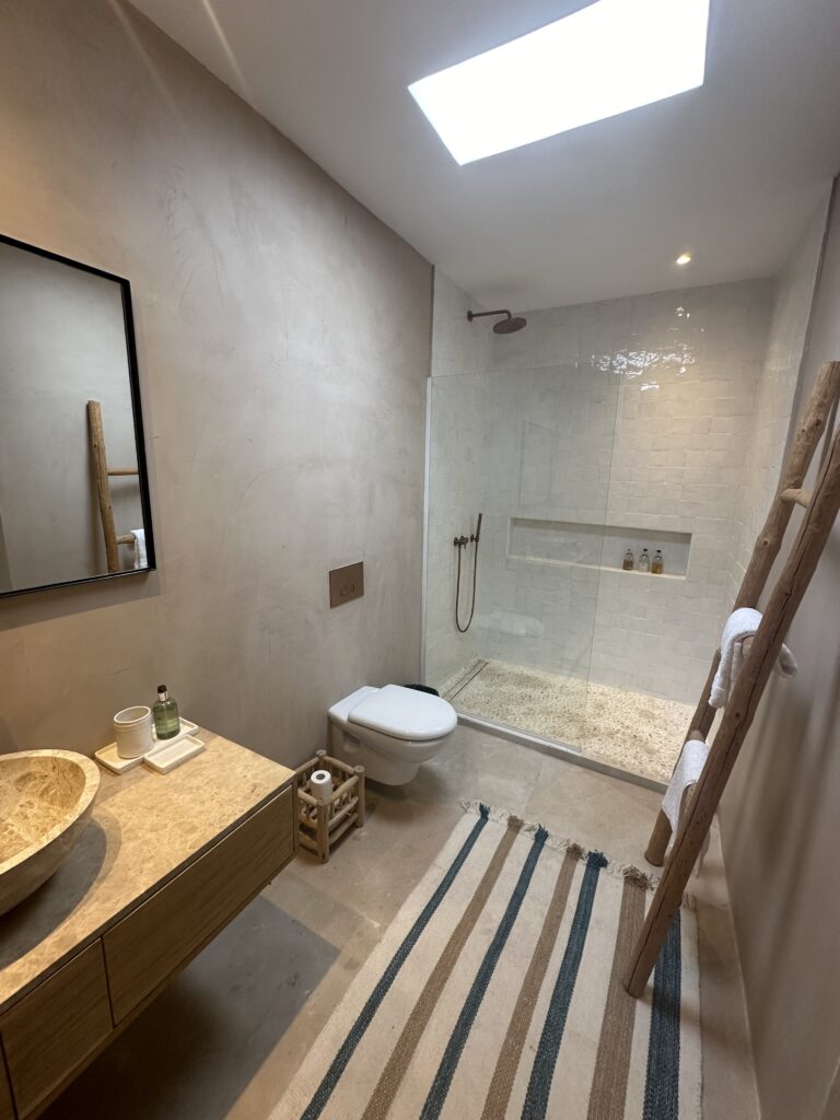 La vivienda destaca por su diseño cuidado y su estética “shabby chic”, con materiales naturales, tonos neutros y mobiliario a medida que aportan calidez y sofisticación.